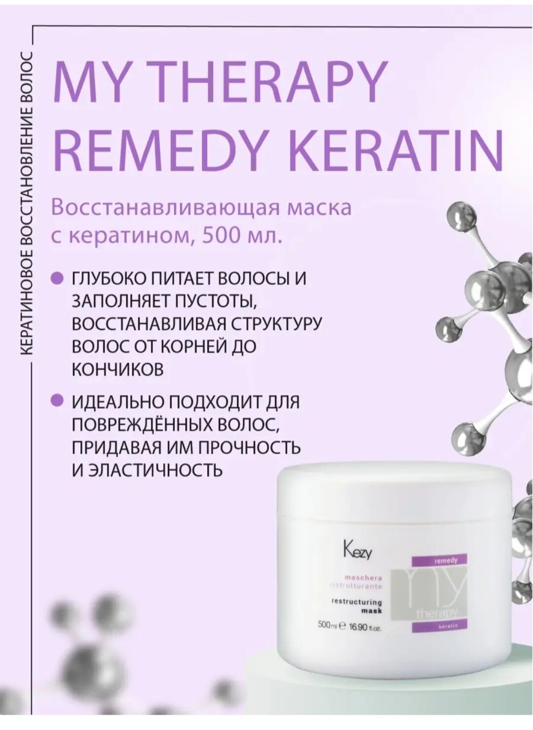 10 цен на KEZY Mytherapy Restructuring Mask Маска для волос реструктурирующая с кератином, 1000 г, 500 мл, банка