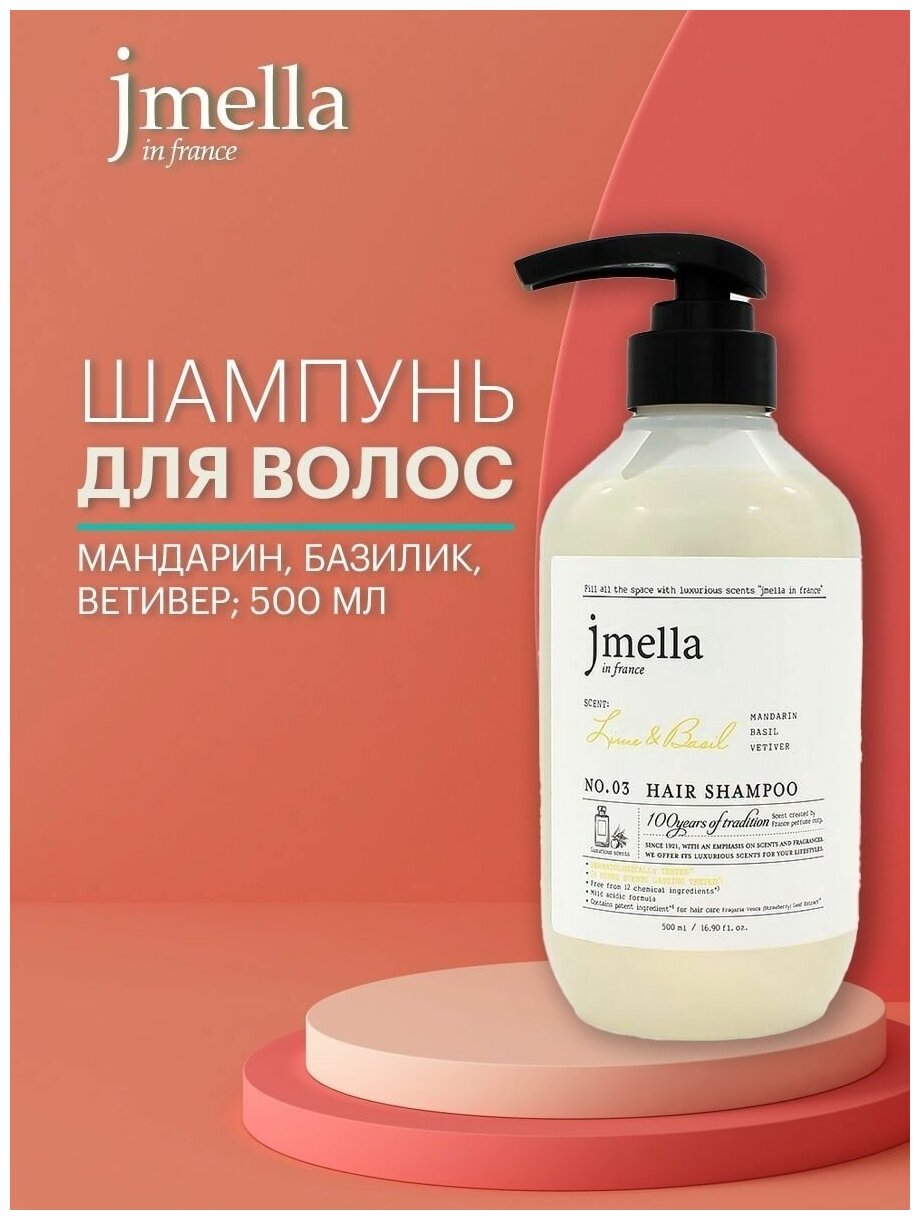 Jmella Парфюмированный шампунь для волос Лайм и Базилик N0.03 In France Lime & Basil Hair Shampoo, 500 мл 749 ₽