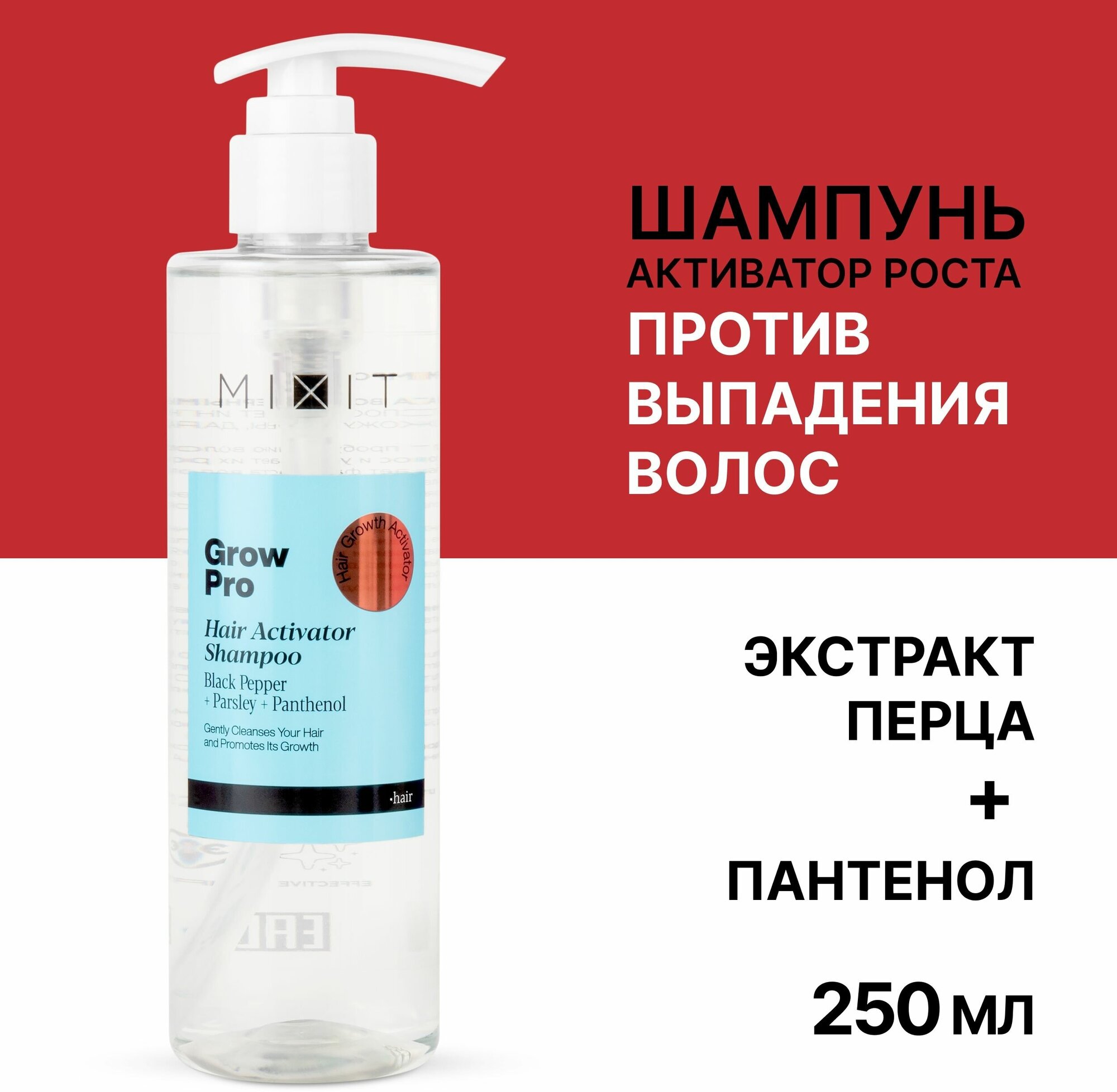 MIXIT Очищающий шампунь для роста волос, от выпадения. Увлажняющее средство для ухода за кожей головы с маслом перца и пантенолом GROW PRO, 250 мл