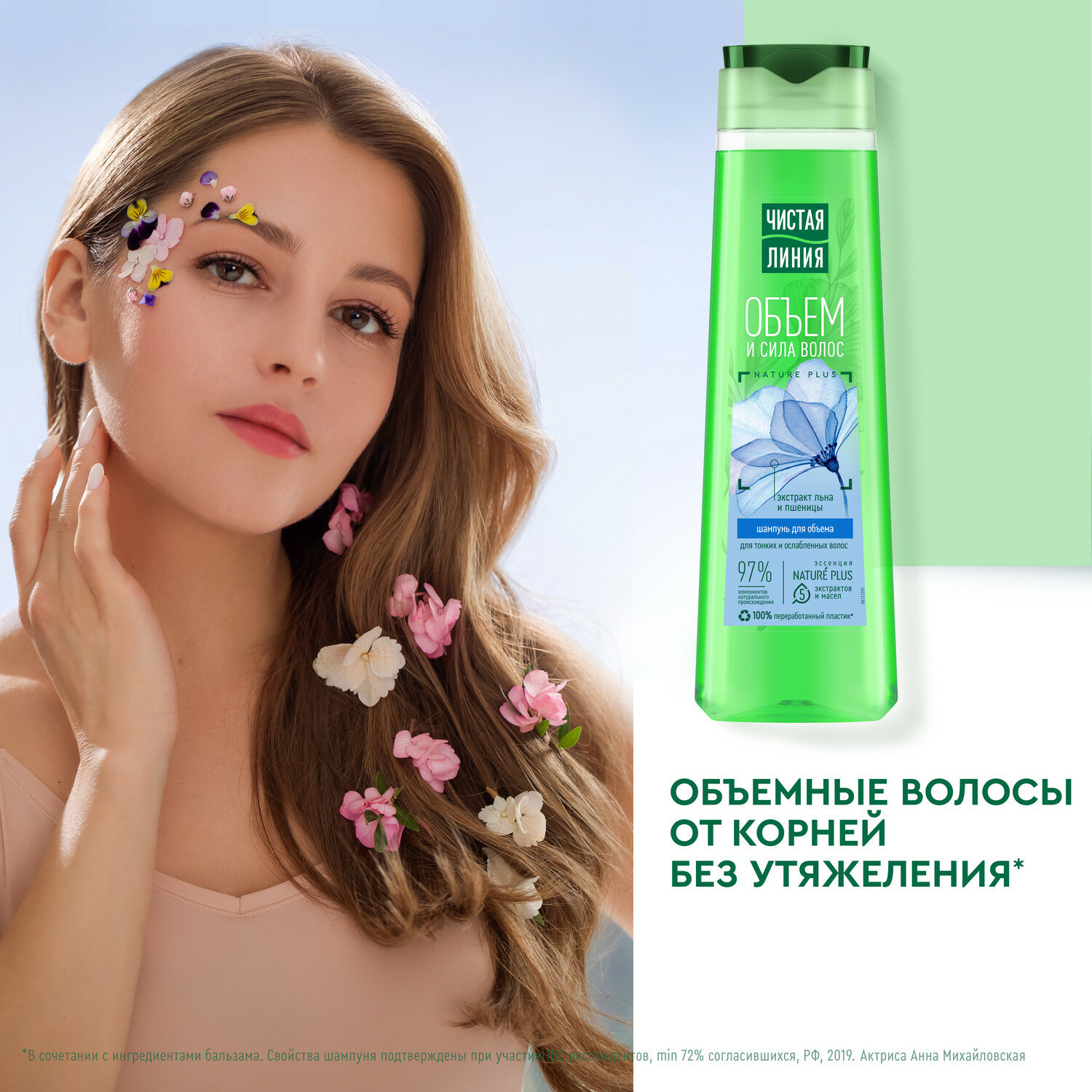 Чистая Линия шампунь объем и сила для тонких и ослабленных волос с экстрактами льна и пшеницы, 400 мл