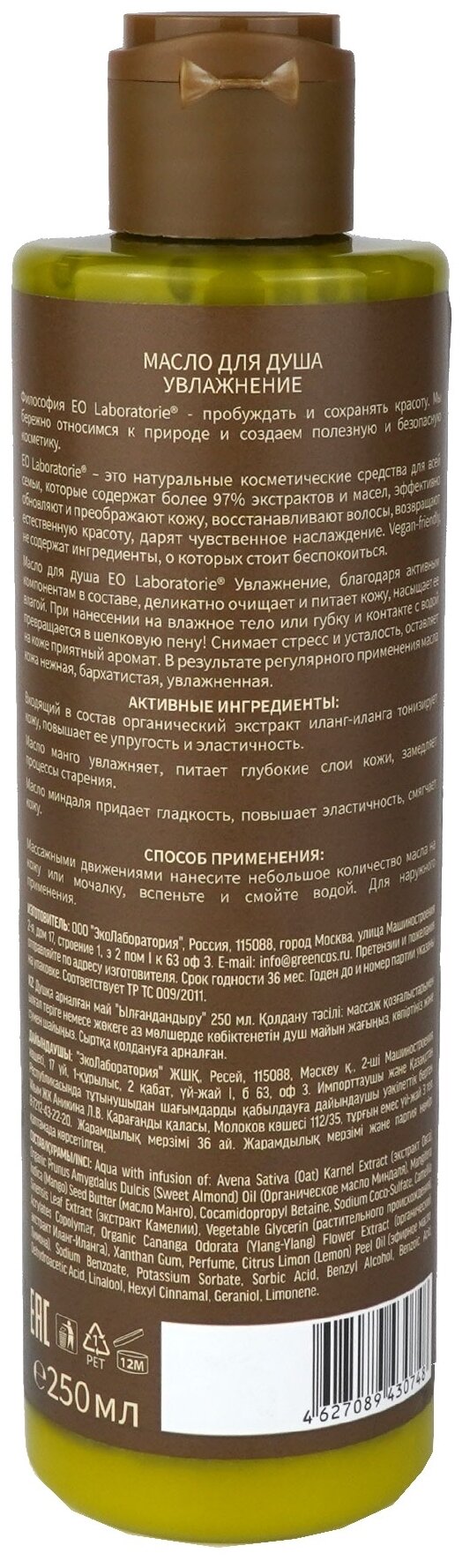 Пенящееся масло для душа "Увлажнение", 250 мл, EoLaboratorie информация: