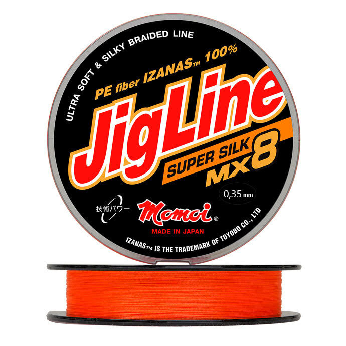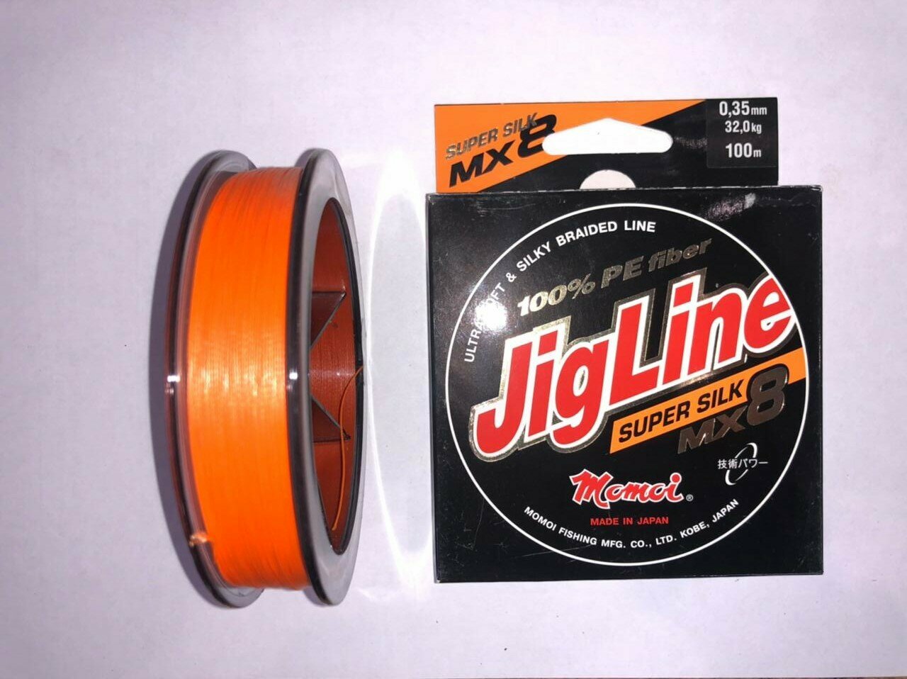 Плетеный шнур для рыбалки Momoi JigLine MX8 Super Silk 100м, 0,3мм, 26кг, оранжевый