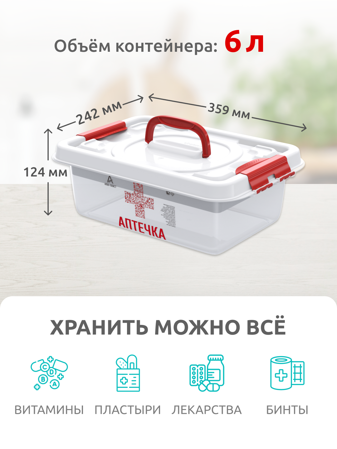 Аптечка домашняя контейнер органайзер для лекарств 6 л АП 407 Альт-Пласт информация:
