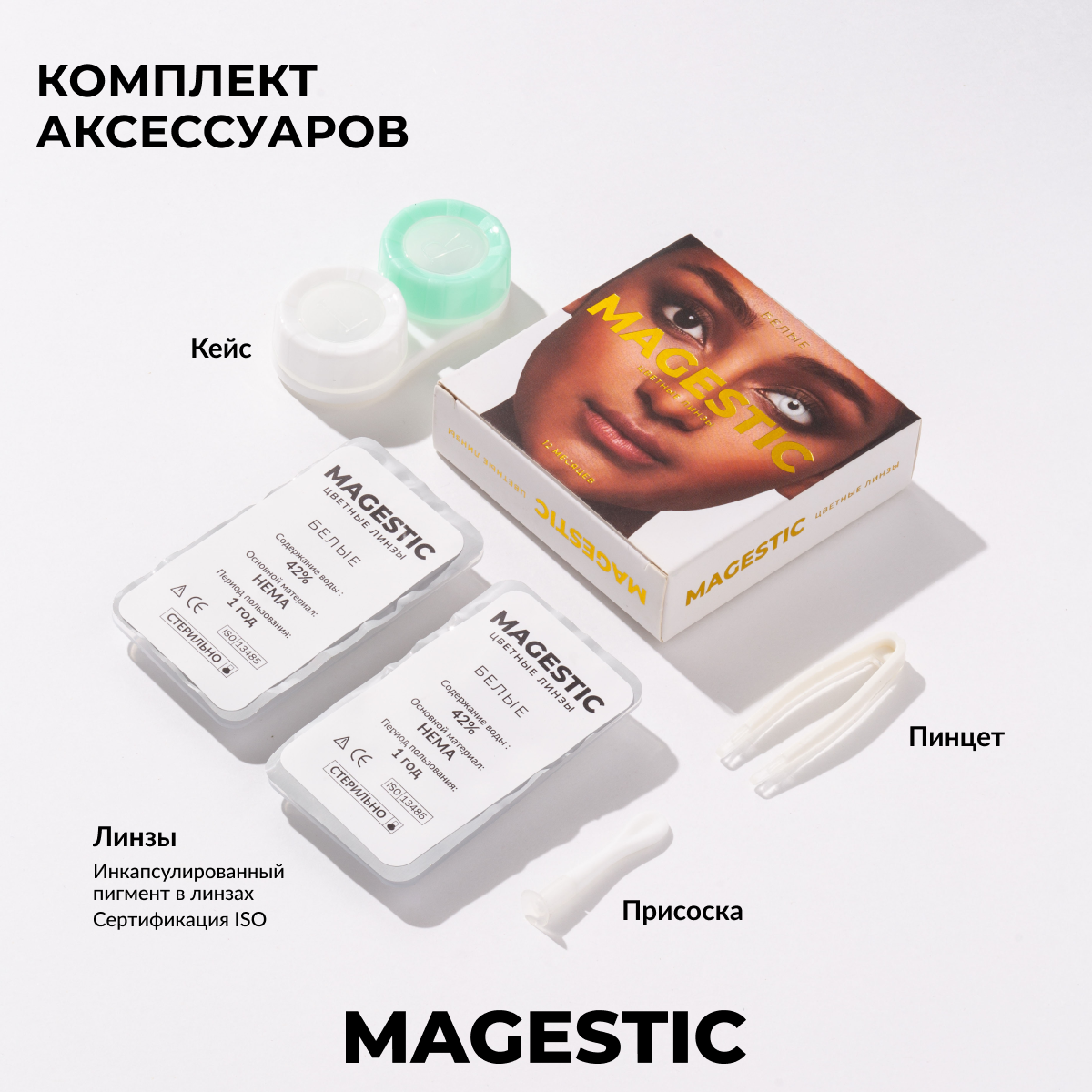 Цветные контактные линзы для глаз белые MAGESTIC 1 пара, 12 месяцев, 0.00, кривизна 8,6 мм 586 ₽