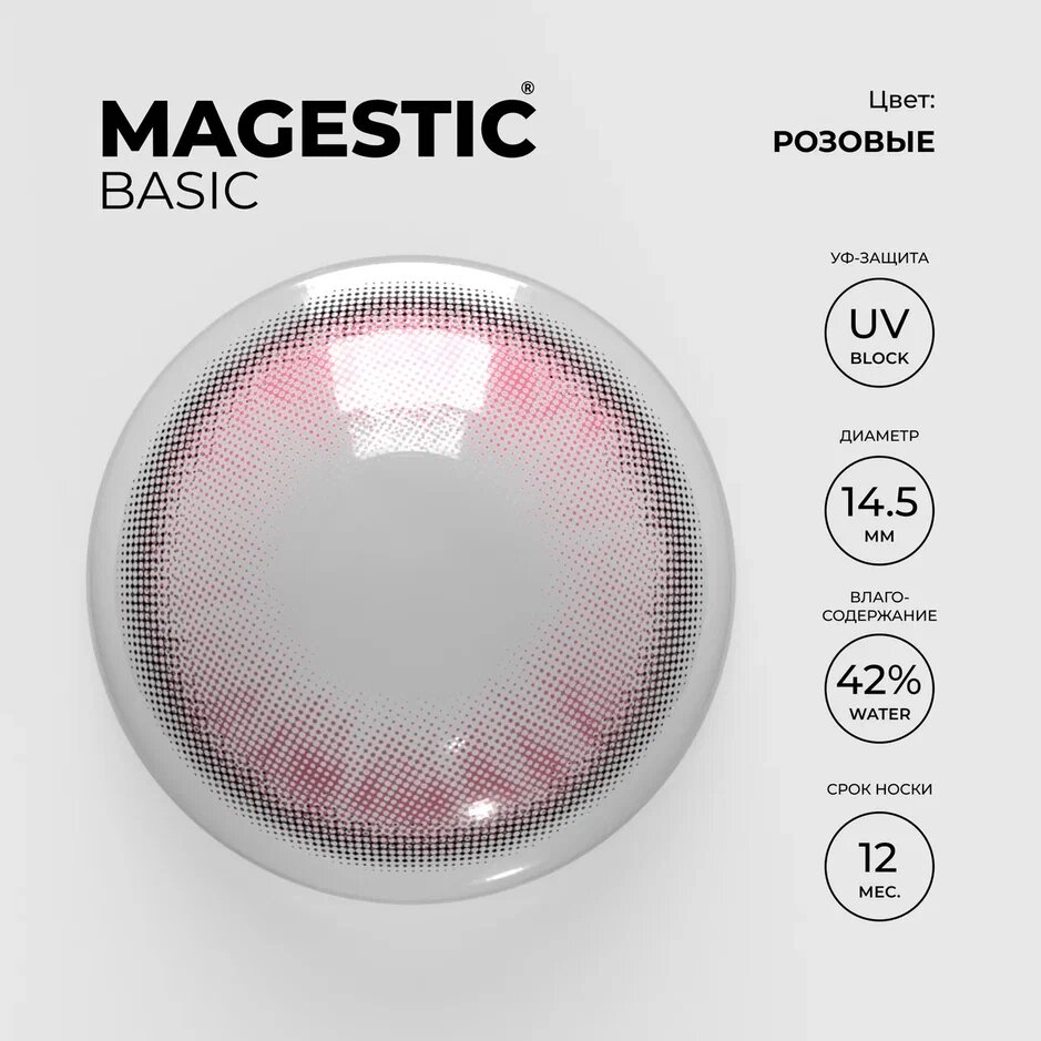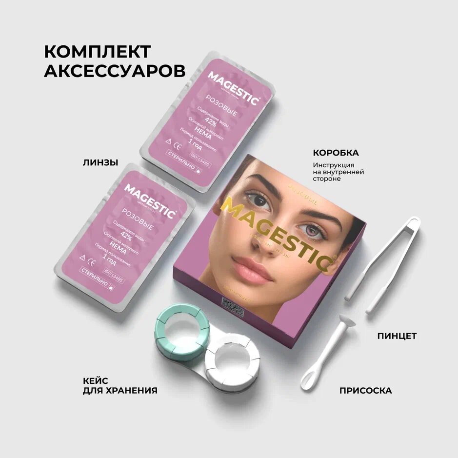 Цветные контактные линзы для глаз розовые MAGESTIC 1 пара, 12 месяцев, 0.00, кривизна 8,6 мм, диаметр 14,5 мм