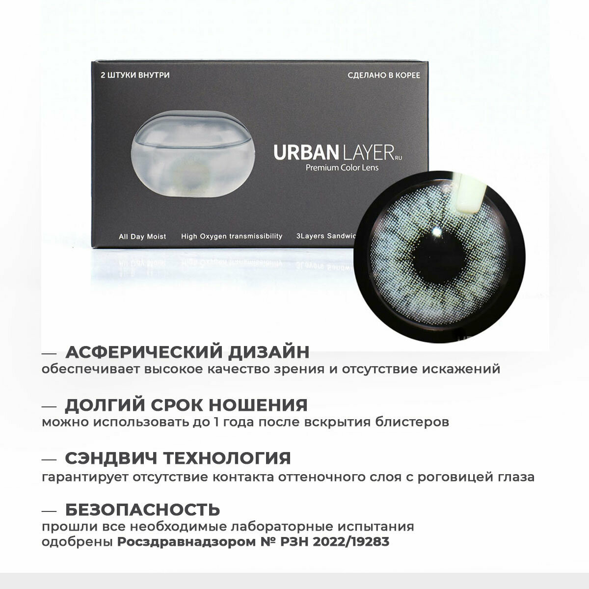 Цветные контактные линзы без диоптрий URBAN LAYER ru Paris Gray 0.00, 2шт 1 320 ₽