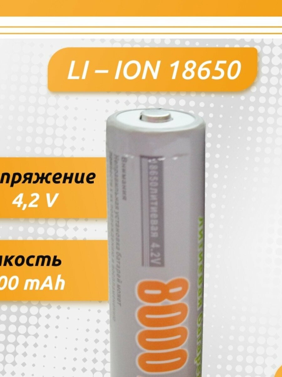 Аккумулятор li ion 18650/ 4,2V, 8000mAh / литий ионная аккумуляторная батарея HANGLIANG/2шт. 312 ₽