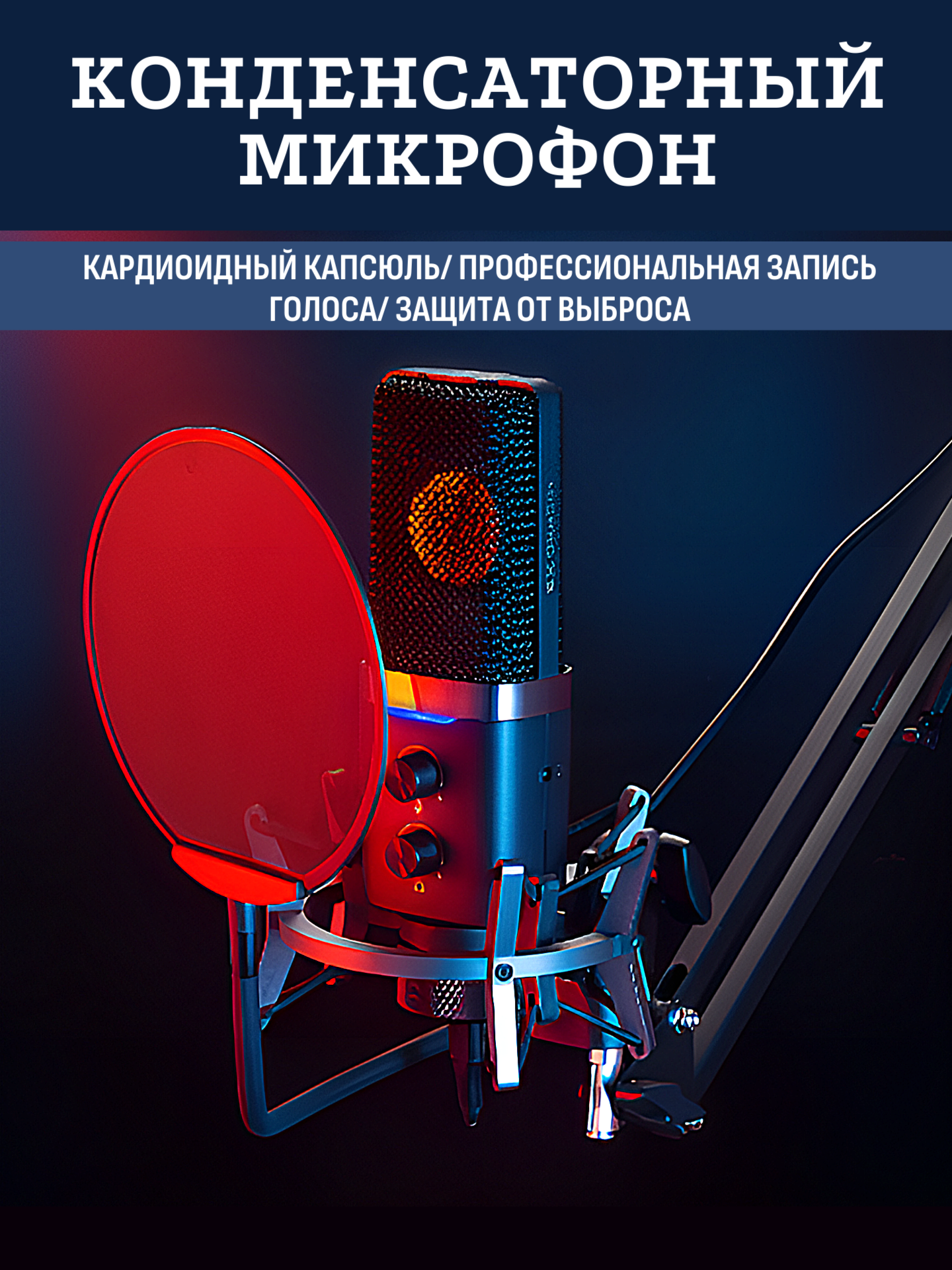 Микрофон для компьютера студийный игровой динамический RGB 1 450 ₽