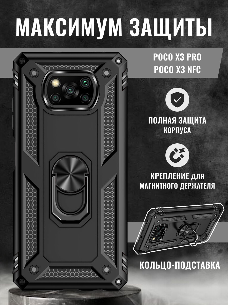 Чехол на Poco X3 Pro / Poco X3 NFC защитный противоударный бампер на Поко Х3 Про / Поко Х3 НФС с кольцом Черный информация: