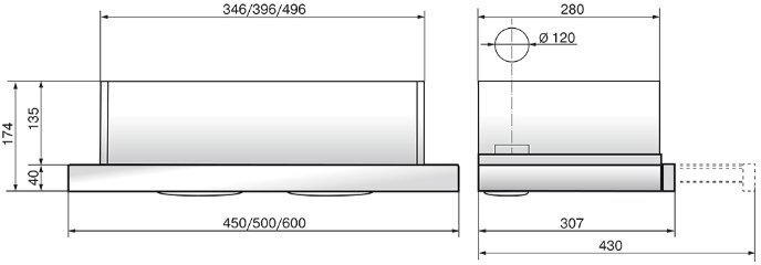 Вытяжка кухонная 60 см встраиваемая, 400 м3/ч, цвет черный, ELIKOR Интегра 60П-400-В2Л, выдвижная, 2 скорости, управление клавишное, 2 лампы накаливания