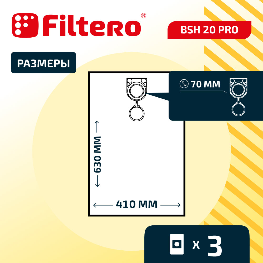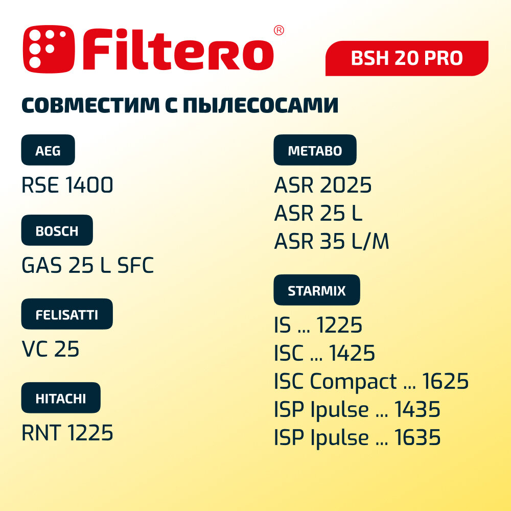 Мешки Filtero BSH 20 Pro для промышленных пылесосов AEG, BOSCH, FELISATTI, HITACHI, METABO, STARMIX, 3 штуки информация:
