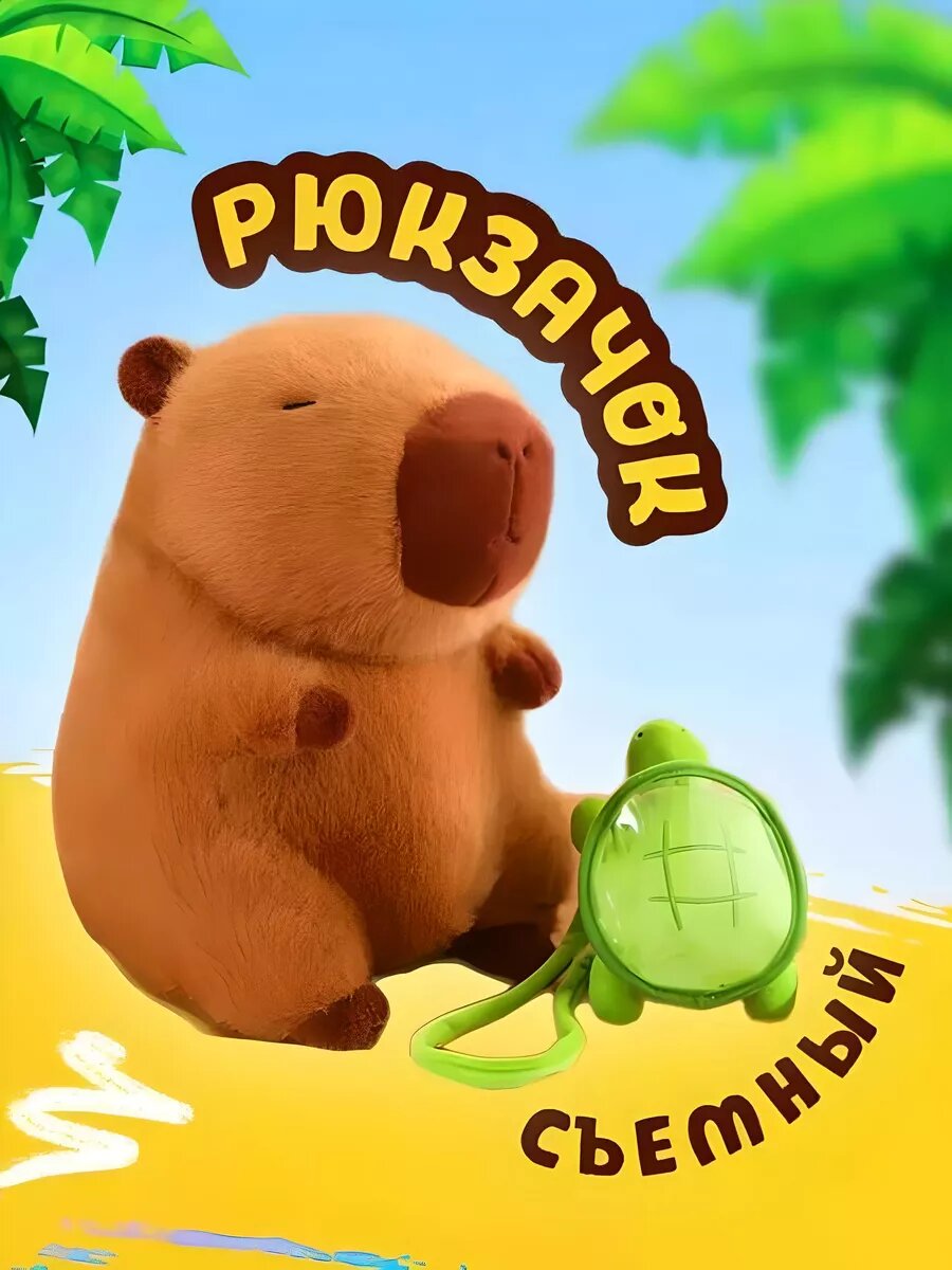 Мягкая игрушка Капибара с рюкзаком черепашкой 20 см информация: