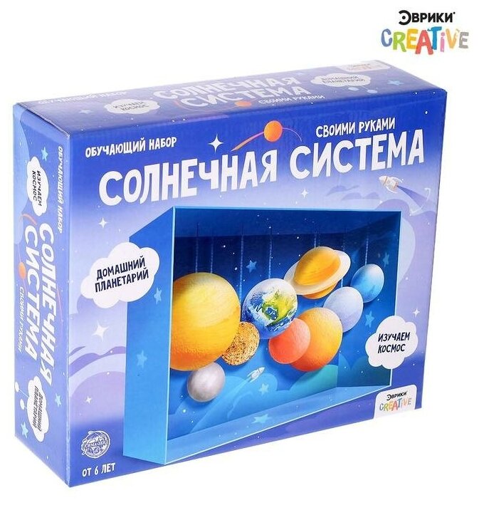 | Комплектация | основа (картон, пенополистирол): 16 × 16 × 0,5 см.,12 планет на липком слое (картон, пенополистирол), обучающий материал(инструкция), наклейки с названиями |