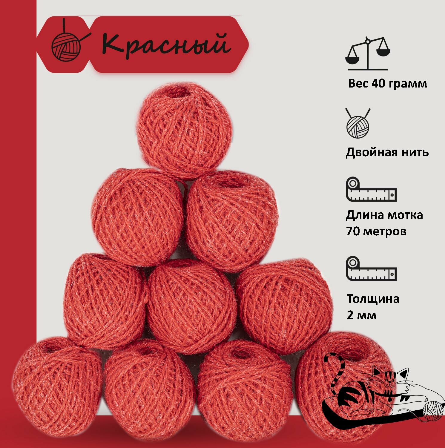 10 цен на Пряжа для ручного вязания в клубочках. Набор 10 штук. Моток 40 грамм / 70 метров. Красный
