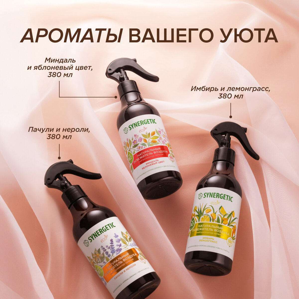 Ароматический гипоаллергенный освежитель воздуха SYNERGETIC "Пачули и нероли" на водной основе, натуральный нейтрализатор воздуха 380мл 232 ₽
