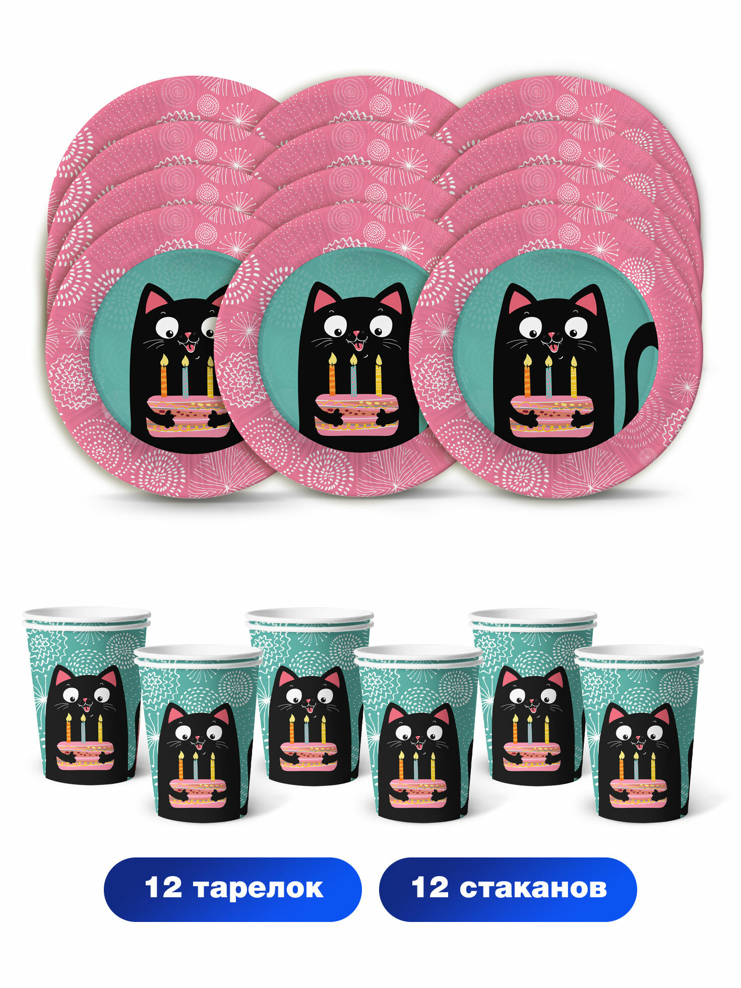 10 цен на Набор для праздника Кошки (тарелка, стакан по 12 шт.)