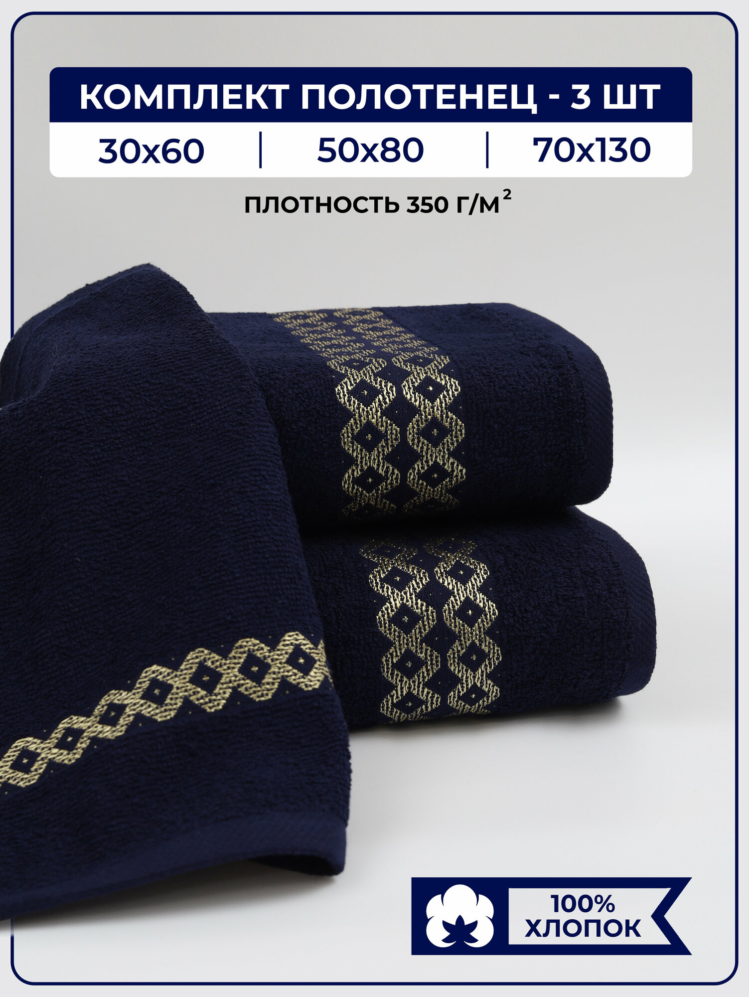 Набор махровых полотенец № 2707 Блеск темно-синий 3 шт (30х60 1 шт, 50х80 1 шт,70х130 1 шт) 893 ₽