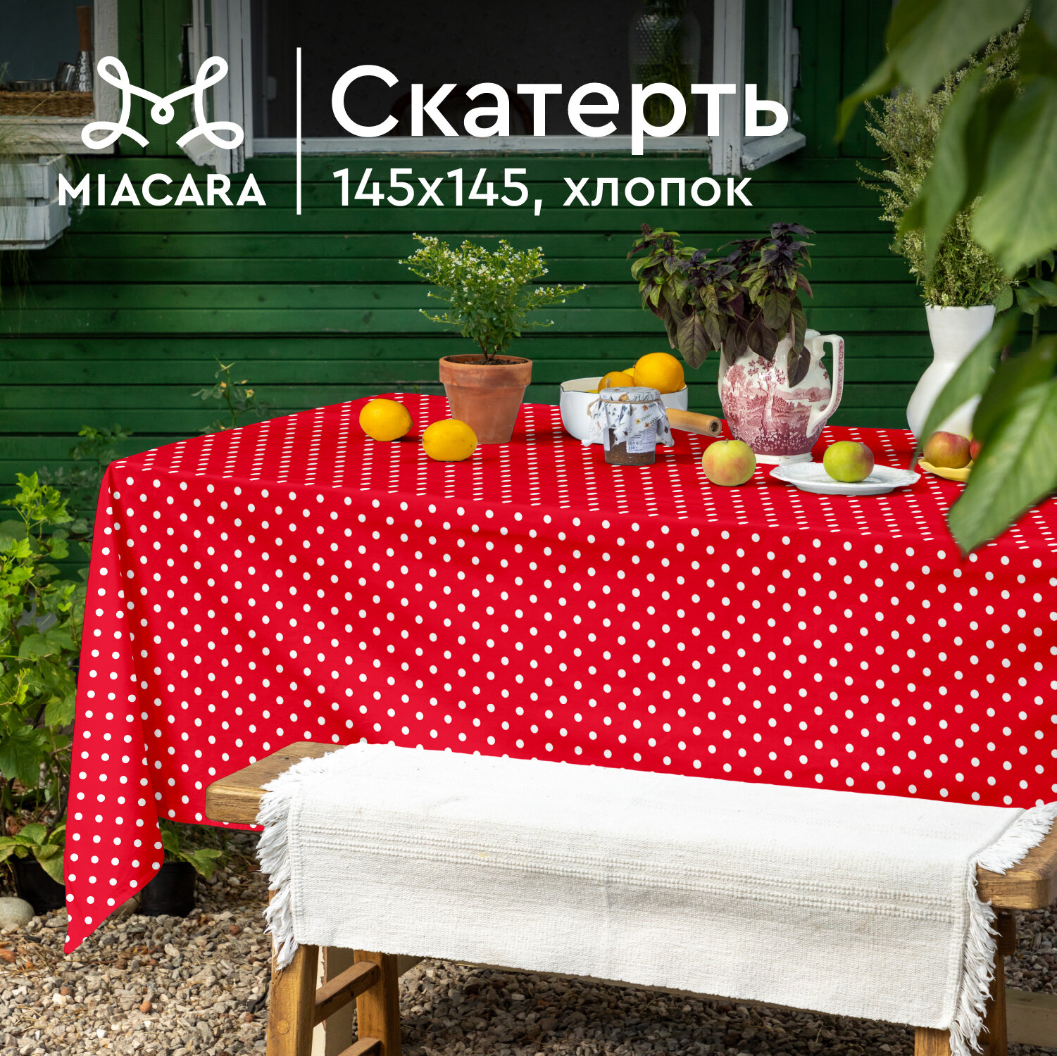 10 цен на Скатерть рогожка 145х145 "Mia Cara" рис 30394-7 Горох красный