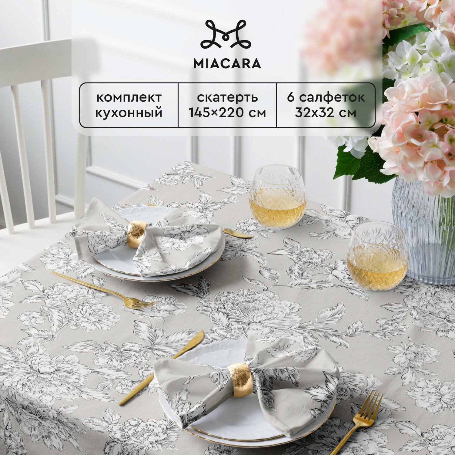 Комплект скатерть 145х220 + 6 салфеток 32х32 "Mia Cara" 14056-1/14057-1 Душистый пион 1 237 ₽