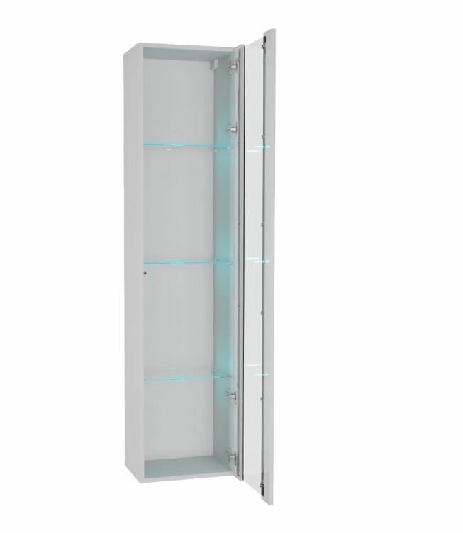 Шкаф пенал, шкаф навесной модульный, шкаф книжный POINT 41 , Белый глянец, подсветка полок, 40х170х29 см (ШхВхГ)