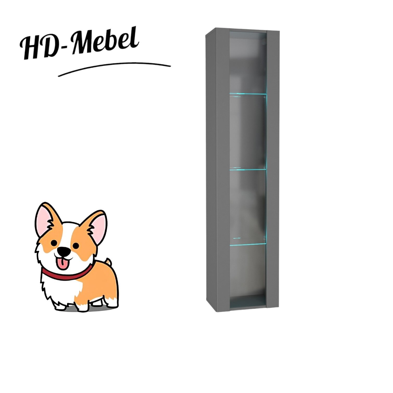Шкаф-витрина Первый Мебельный Поинт Серый графит / Стекло Без блока питания