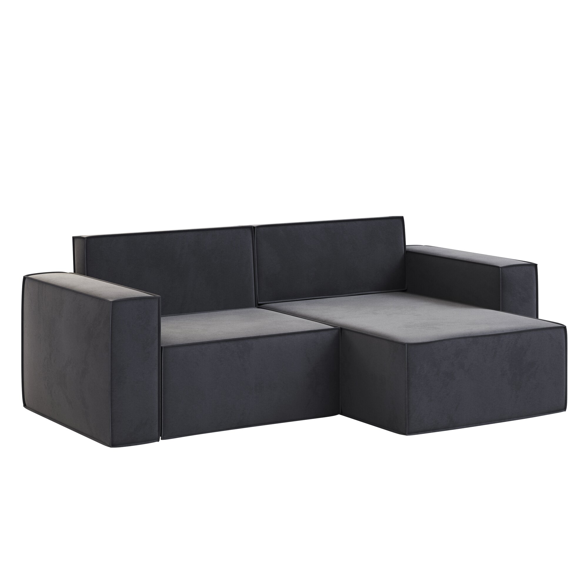 Диван угловой Атланта М левый угол, велюр серый, вставка велюр черный