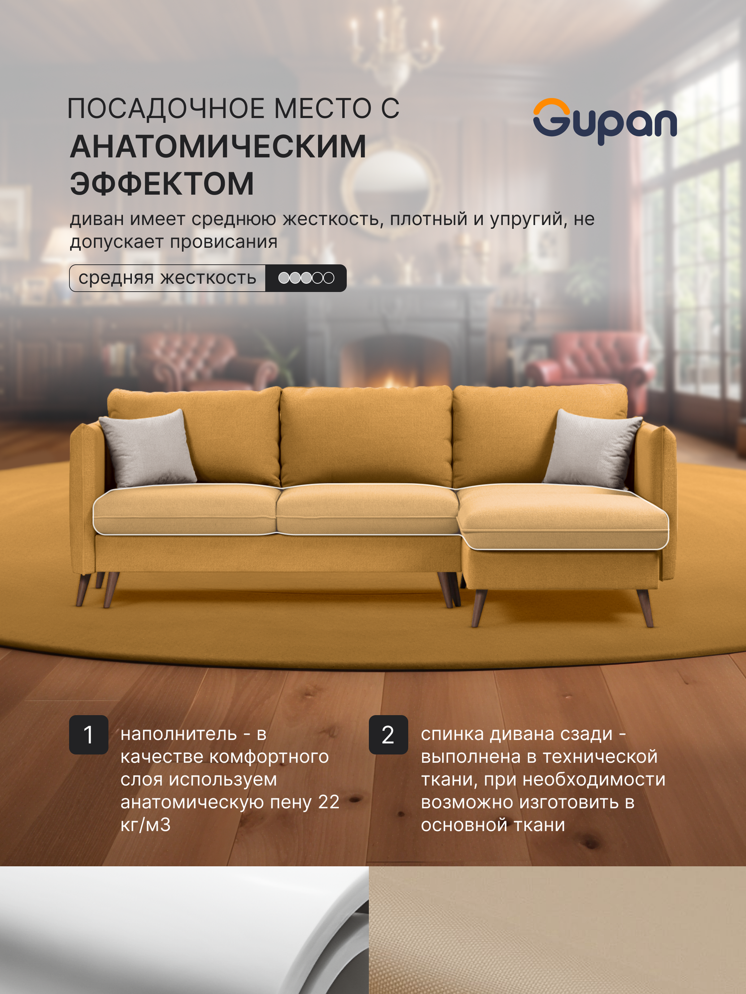 Диван угловой Gupan Делорм Велюр Amigo Yellow, раскладной, механизм еврокнижка, беспружинный, с ящиком для белья информация: