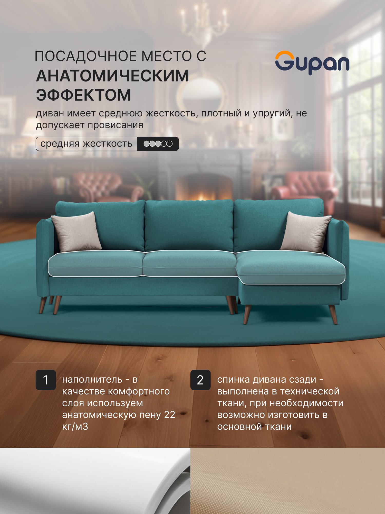 Отзывы на Диван угловой Gupan Делорм Велюр Amigo Lagoon, раскладной, механизм еврокнижка, беспружинный, с ящиком для белья