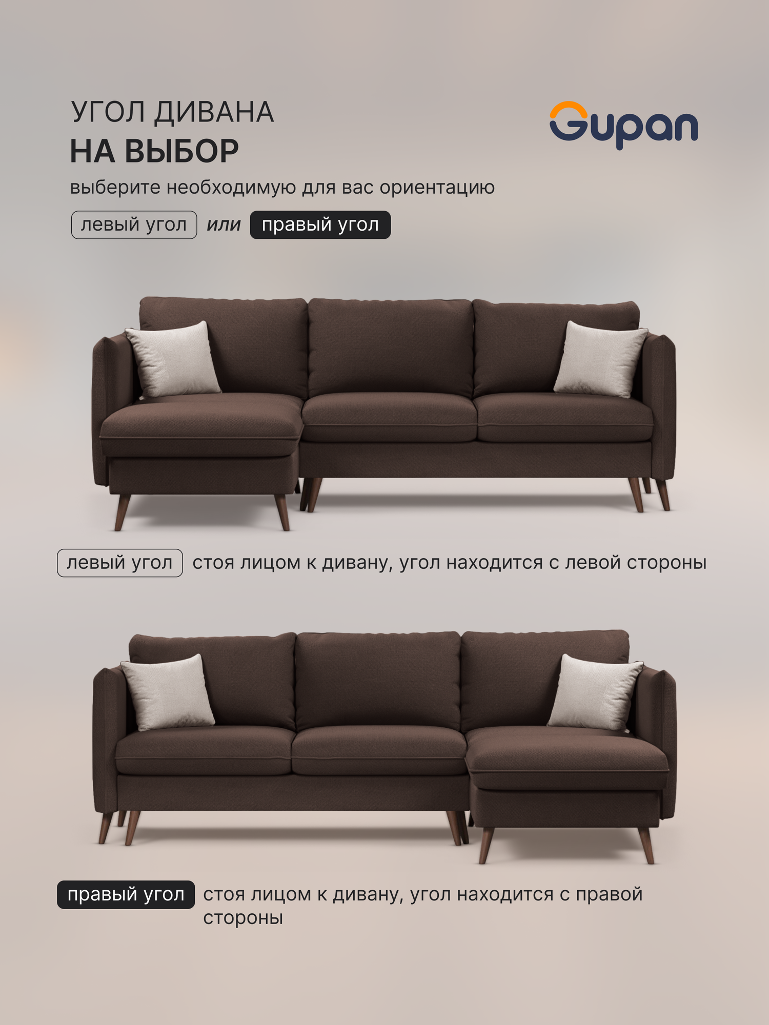 10 цен на Диван угловой Gupan Делорм Велюр Amigo Coffee, раскладной, механизм еврокнижка, беспружинный, с ящиком для белья