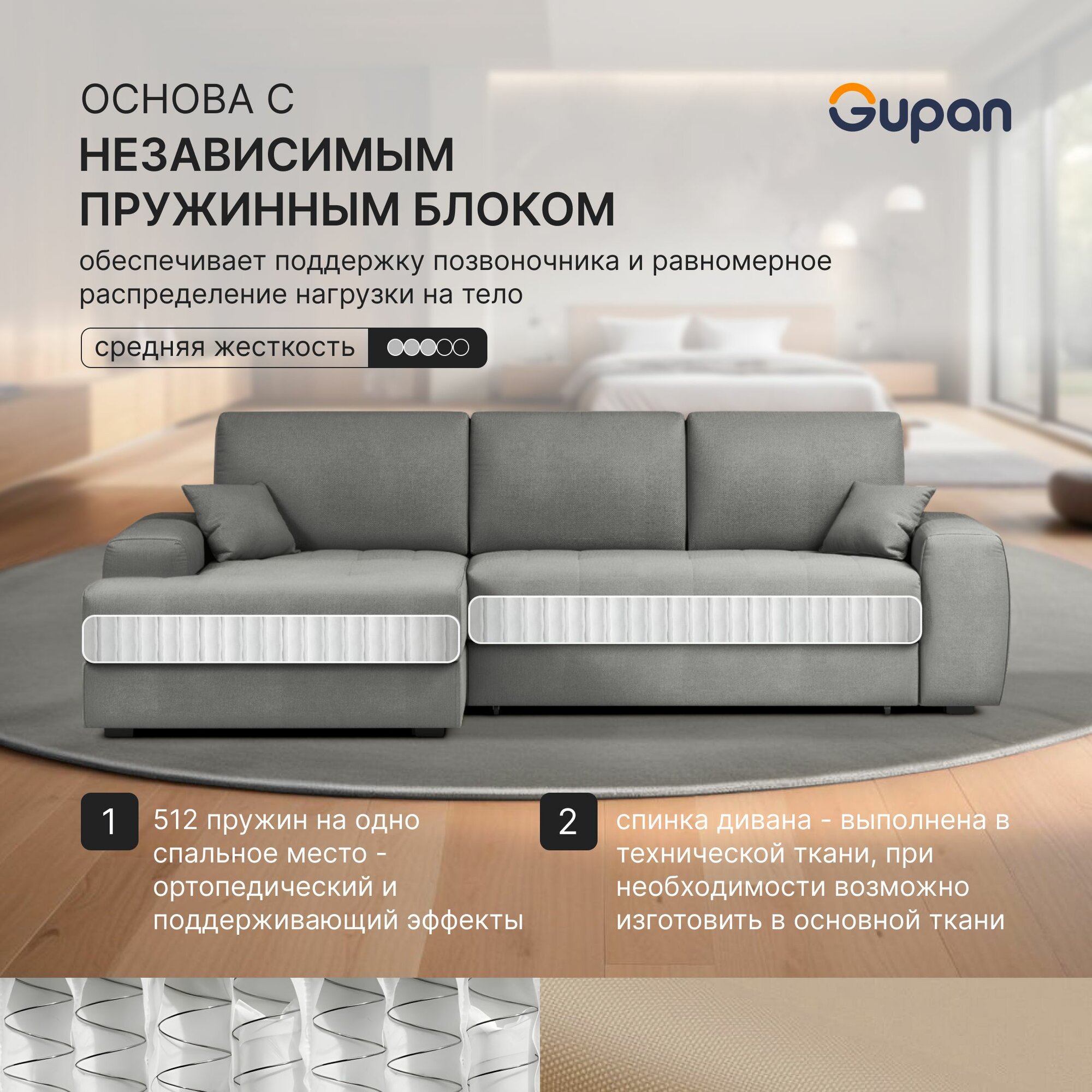 Отзывы на Диван угловой Gupan Элион / Коста Велюр Amigo Grey, раскладной, механизм еврокнижка, независимые пружины, с ящиком для белья