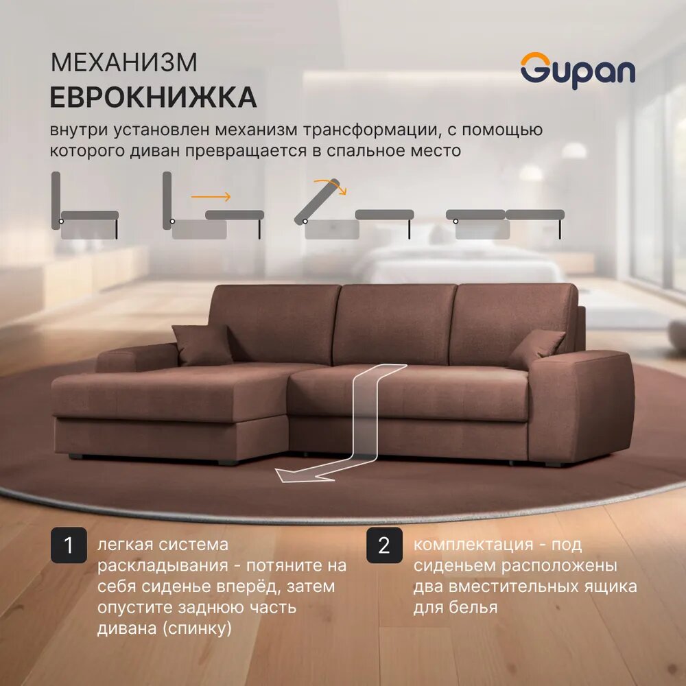 10 цен на Диван угловой Gupan Элион / Коста Велюр Amigo Brown, раскладной, механизм еврокнижка, независимые пружины, с ящиком для белья