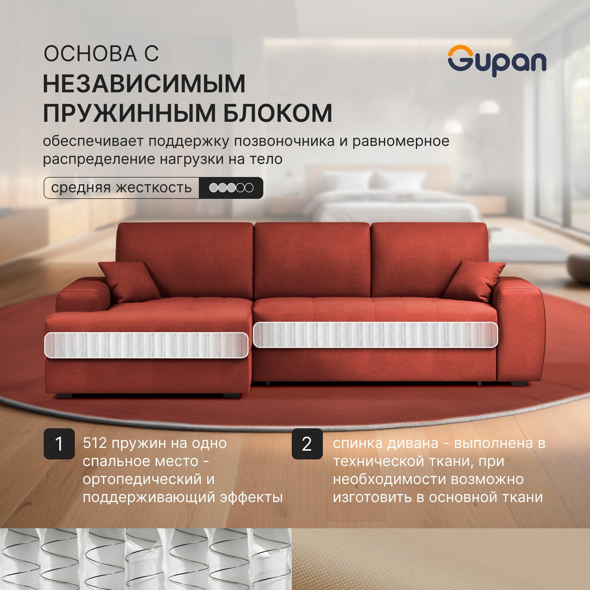 10 цен на Диван угловой Gupan Элион / Коста Велюр Amigo Terra, раскладной, механизм еврокнижка, независимые пружины, с ящиком для белья