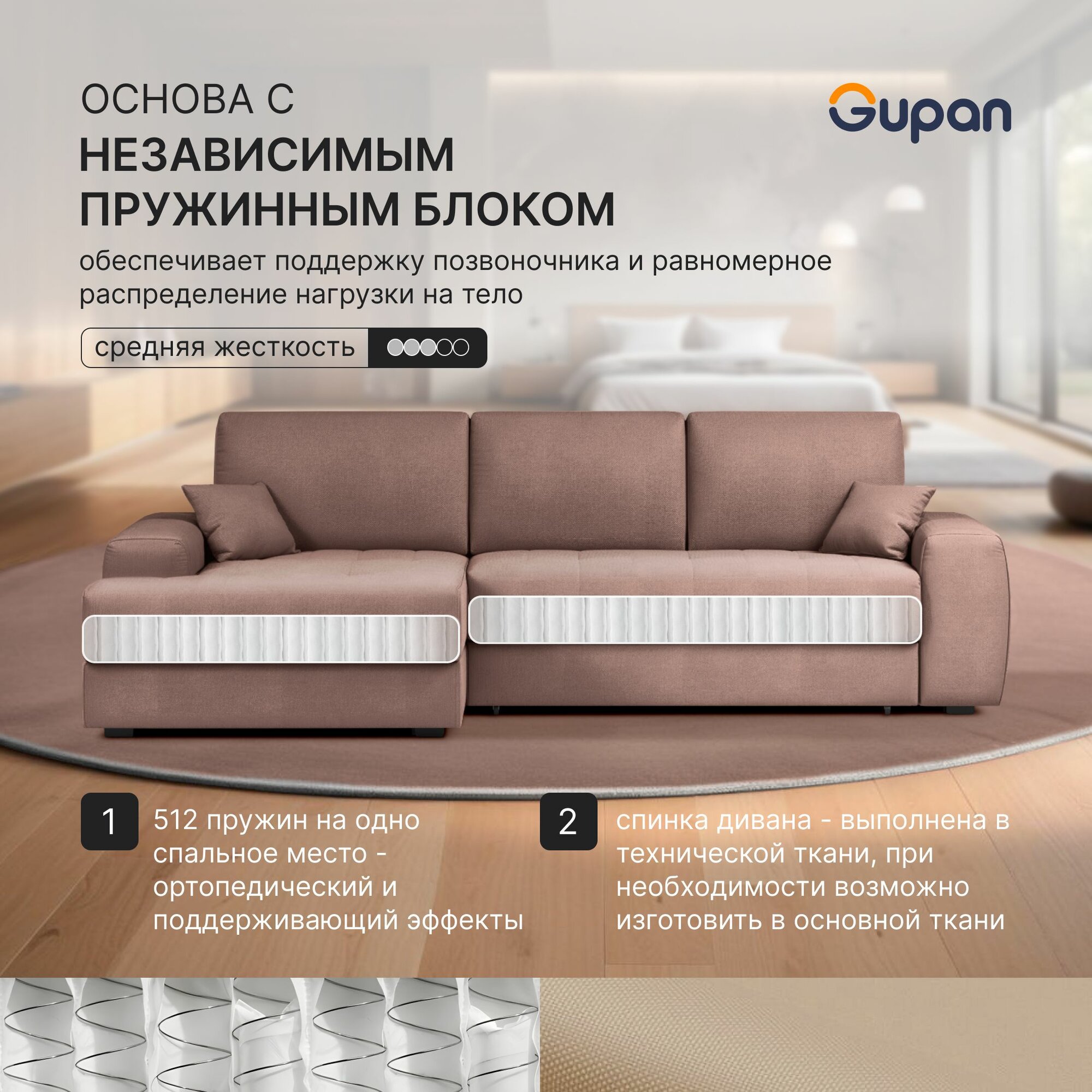 Отзывы на Диван угловой Gupan Элион / Коста Велюр Amigo Cocoa, раскладной, механизм еврокнижка, независимые пружины, с ящиком для белья