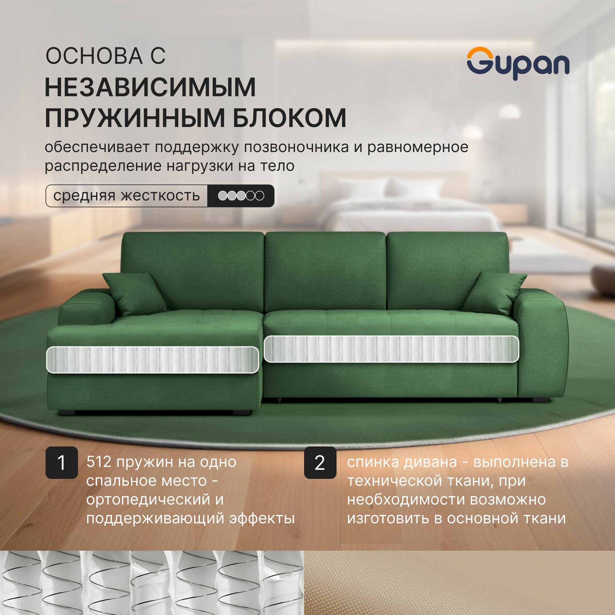 Отзывы на Диван угловой Gupan Элион / Коста Велюр Amigo Green, раскладной, механизм еврокнижка, независимые пружины, с ящиком для белья