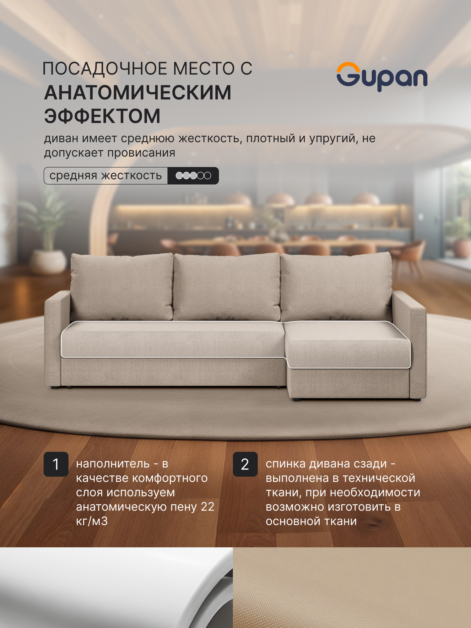Диван угловой Gupan Торонто / Кельн / Denver Рогожка Бежевая, раскладной, механизм дельфин, беспружинный, с ящиком для белья 39 897 ₽