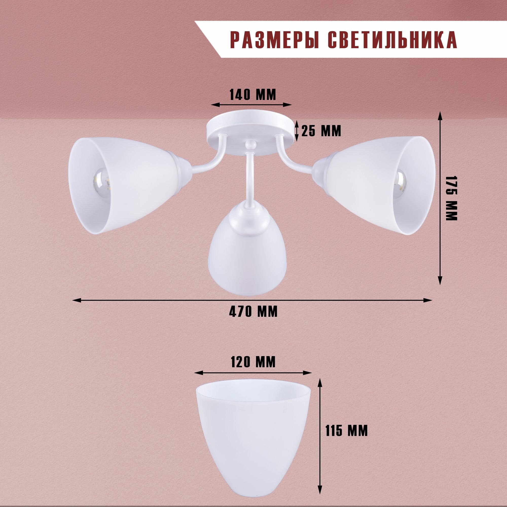 Люстра потолочная для спальни и гостиной с пластиковыми плафонами РОССВЕТ РС23028/3, 3*E27 20 Вт информация: