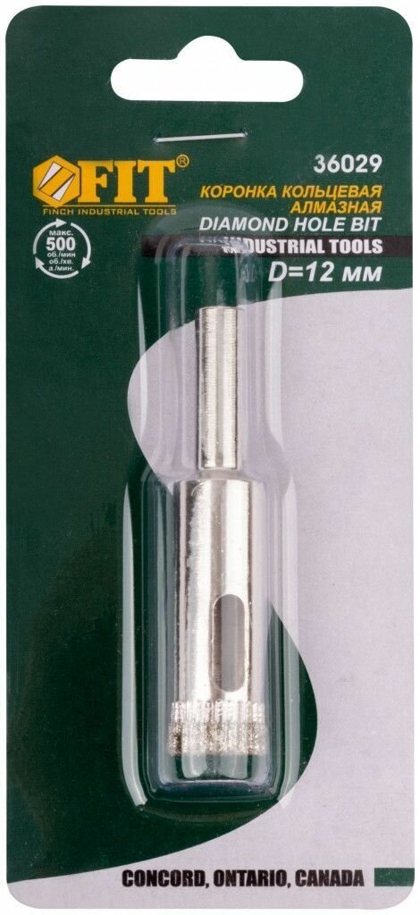 Коронка алмазная кольцевая 12 мм FIT для стекла и кафеля информация: