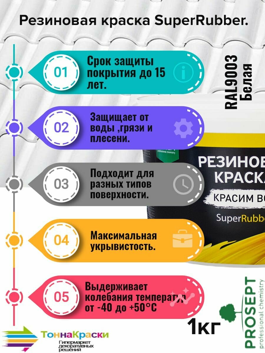 Краска резиновая PROSEPT SuperRubber белый Ral 9003 1 кг