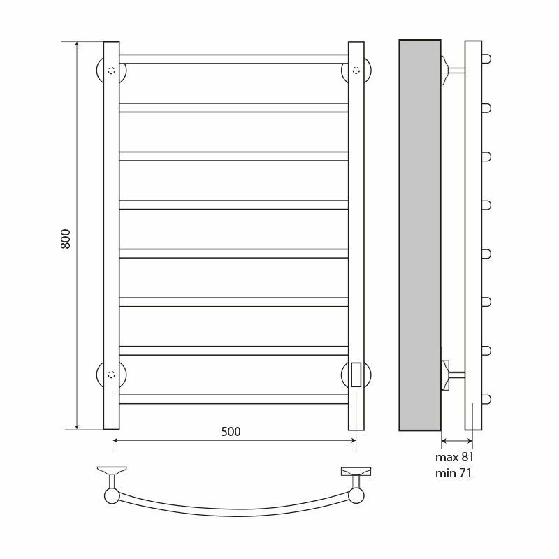 Полотенцесушитель MELODIA Classica Electro 50*80 П8 cухой ТЭН 99Вт встр.диммер чёрный MTRCAE5080_bk информация: