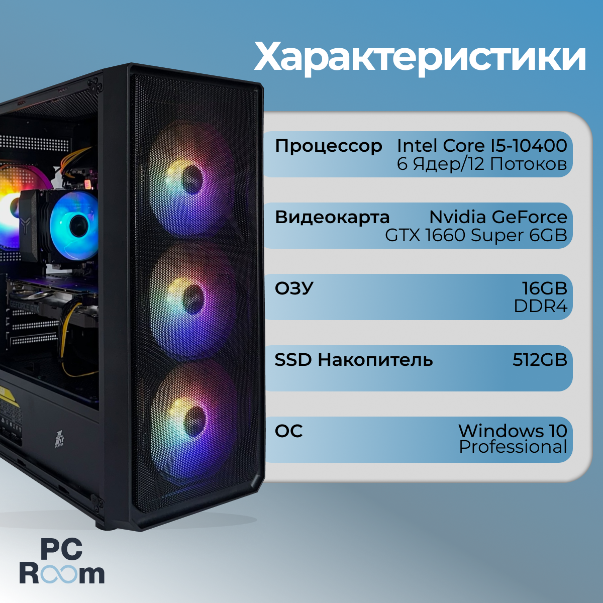 Игровой компьютер M-Stand 2.0: I5-10400 / GTX 1660 super / 16GB DDR4 RAM / 960GB SSD / RGB PC Room информация: