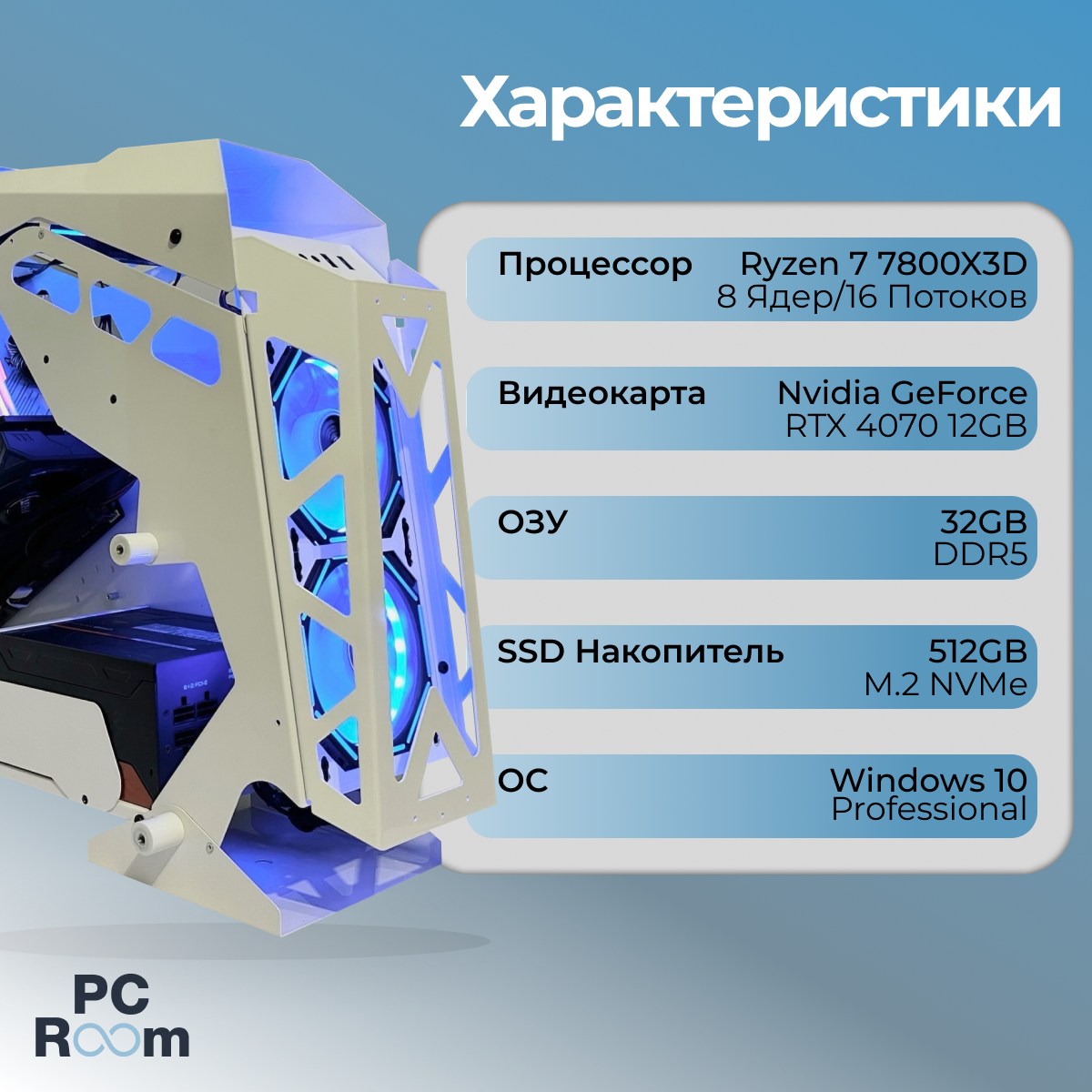 Игровой компьютер M-Stand 2.0: Ryzen 7 7800x3D / RTX 4070 12GB / 32gb RAM DDR5/ SSD M.2 NVMe 512GB / ARGB / PC Room информация: