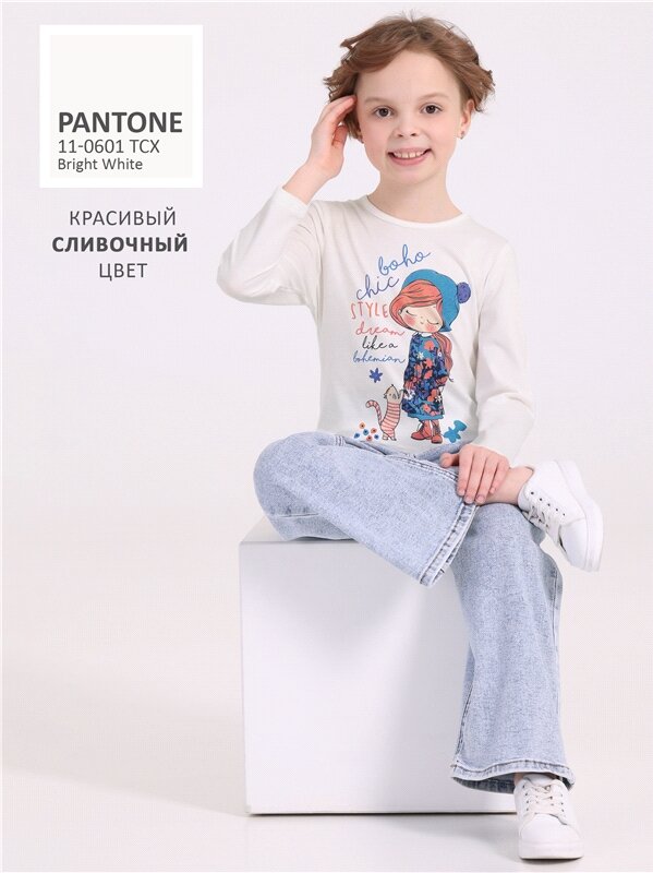 Лонгслив для девочки с принтом в садик хлопок 100% Апрель 1ДДЛД3568001/1119/1912/*/3382/*/*/* экрю,белый,бежевый,мультиколор 60-116 информация:
