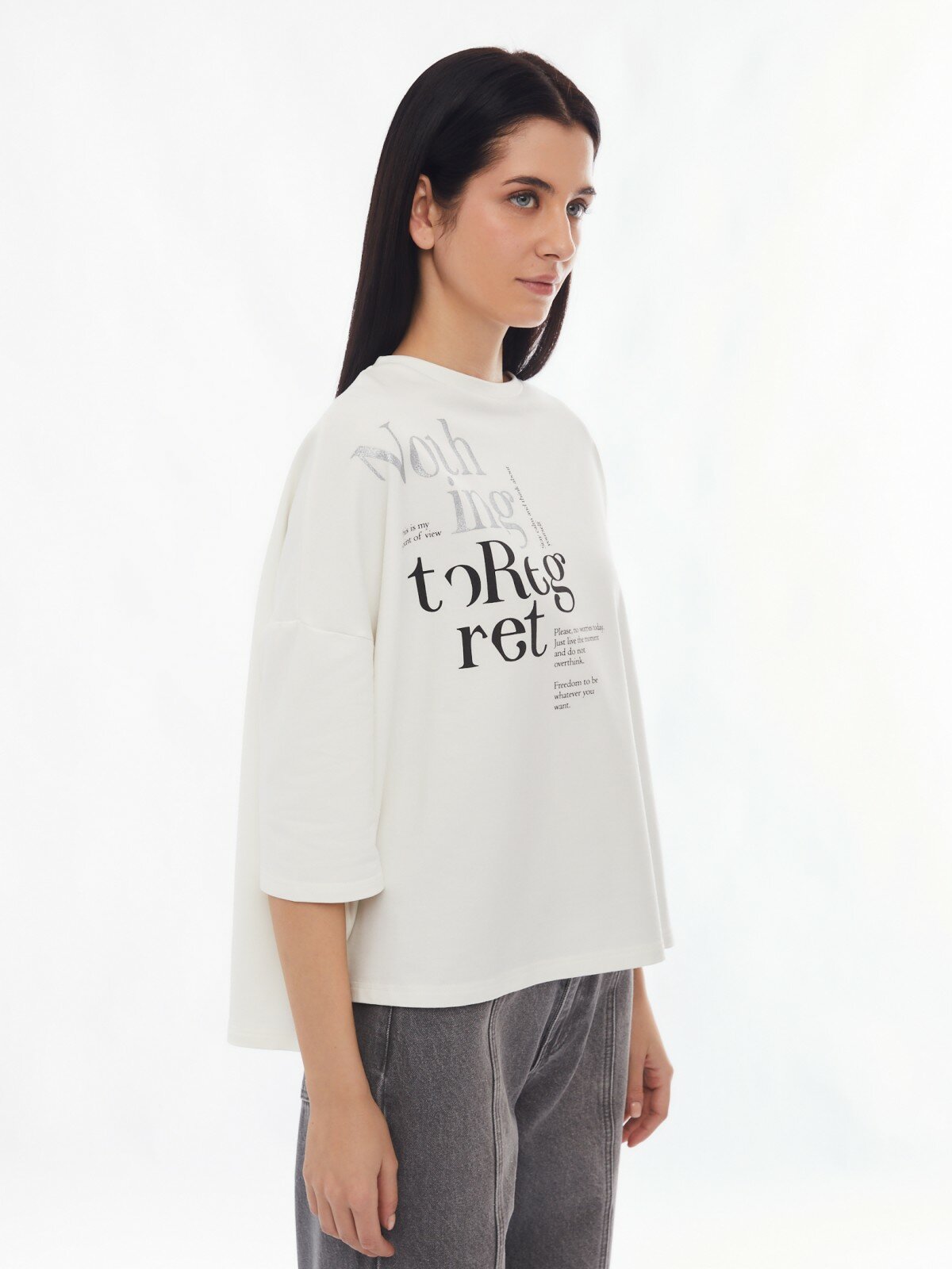 Тонкий джемпер-футболка оверсайз с надписью, цвет Молоко, размер XL 02413319Y091 информация: