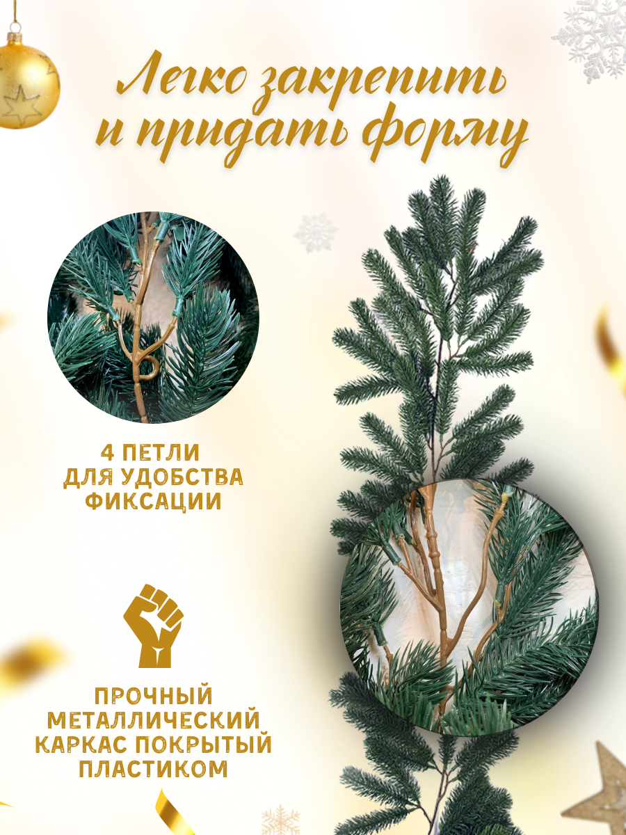 10 цен на Гирлянда хвойная еловая литая искусственная без декора, новогодняя 190 см