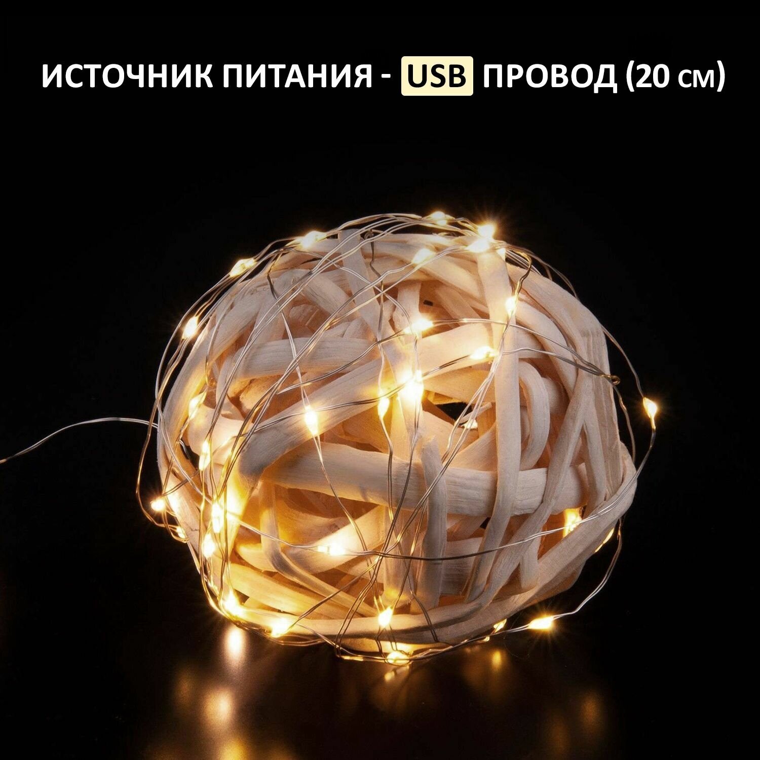 Светодиодная гирлянда Neon-Night "Роса" USB 10 м, теплое белое свечение, 100 LED / новогодние товары гирлянды / новогодняя распродажа / новогодние скидки / новогодние подарки информация: