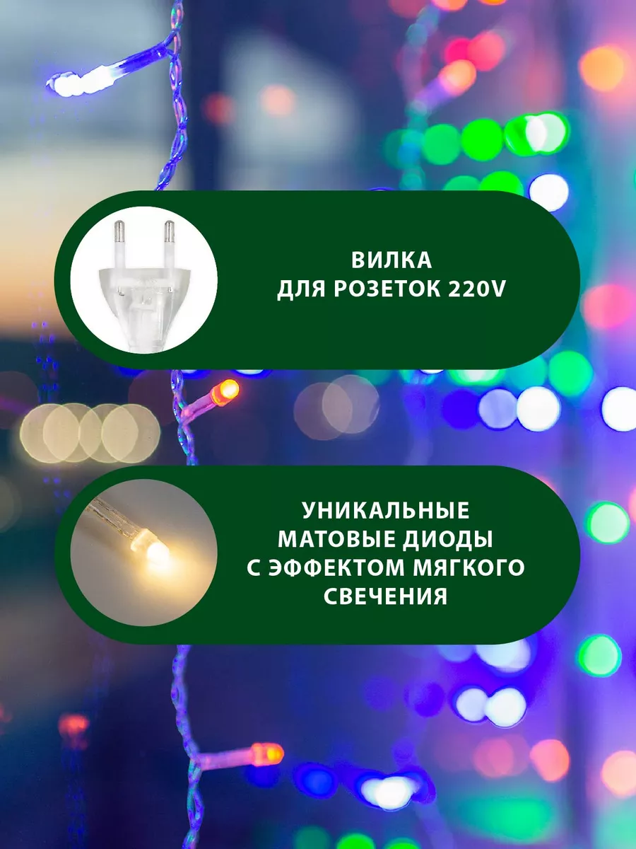 Электрогирлянда Световой занавес, 2 м х 1 м, 120 разноцветных матовых светодиодов, для использования внутри помещений информация:
