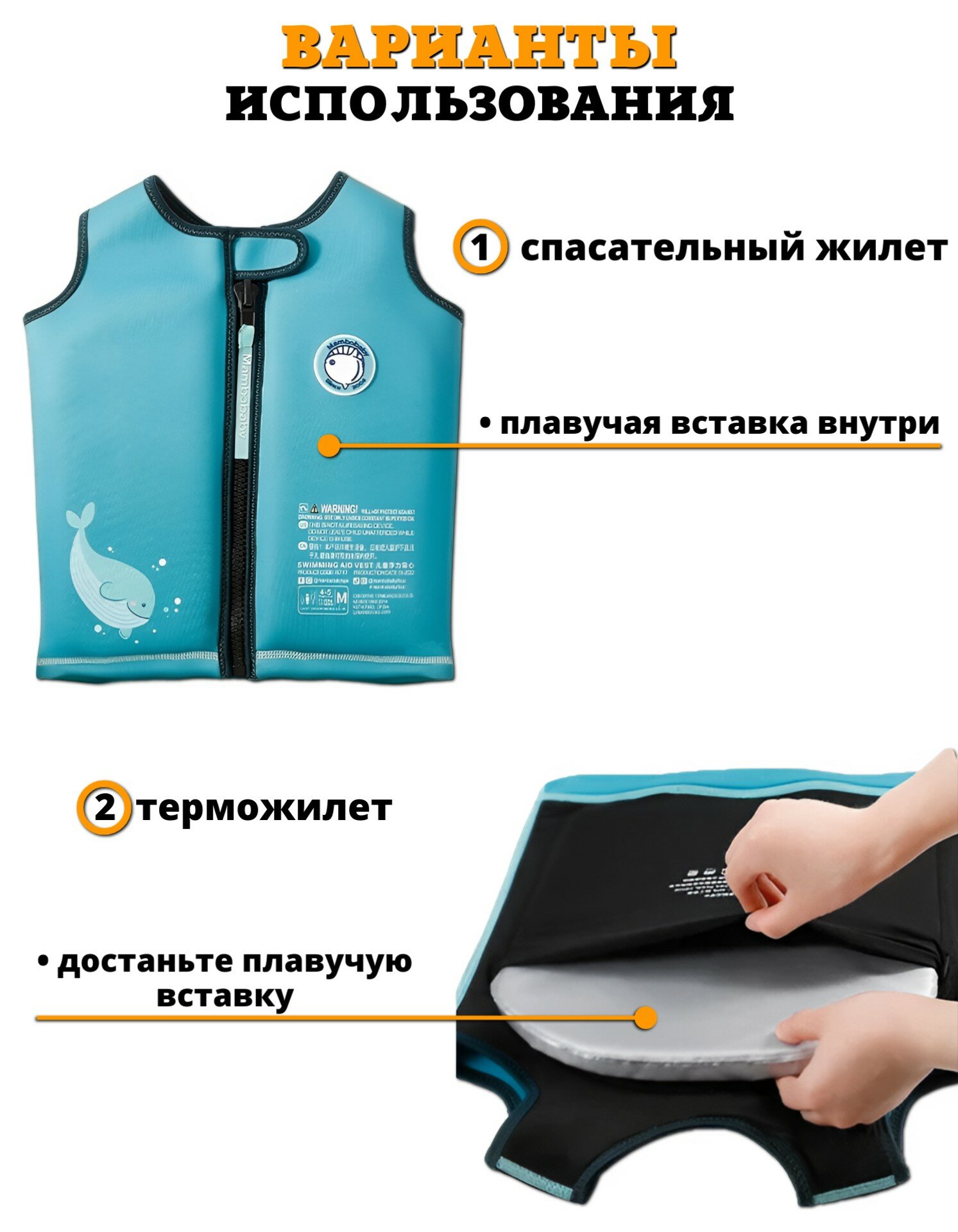 Жилет для плавания детский размер M, от 2 до 3 лет, 13-15 кг, (объем груди/живота до 50 см). Плавательный терможилет для детей информация: