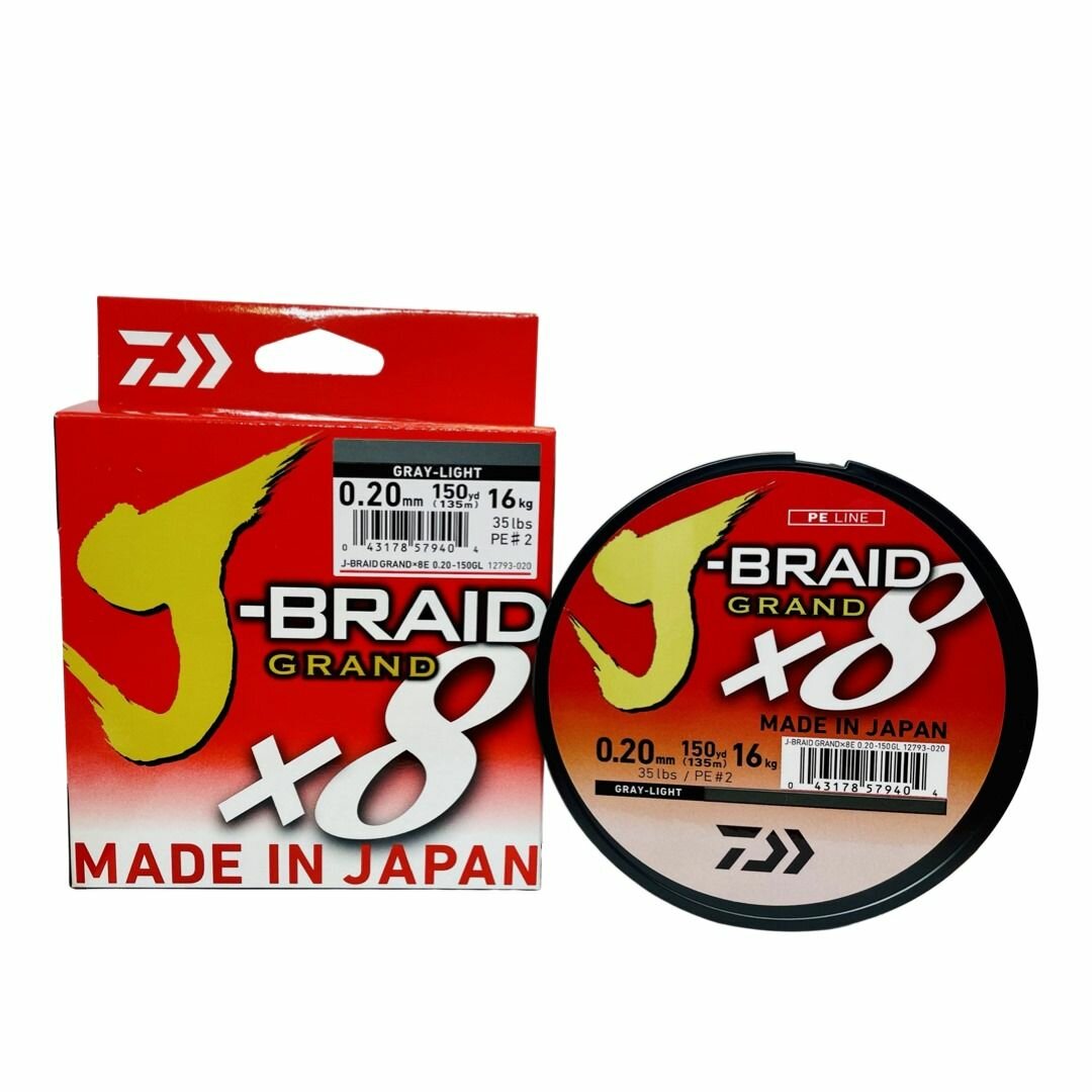 Плетеный шнур для рыбалки Daiwa J-Braid Grand х8 серый 135 метров 0.22 мм информация: