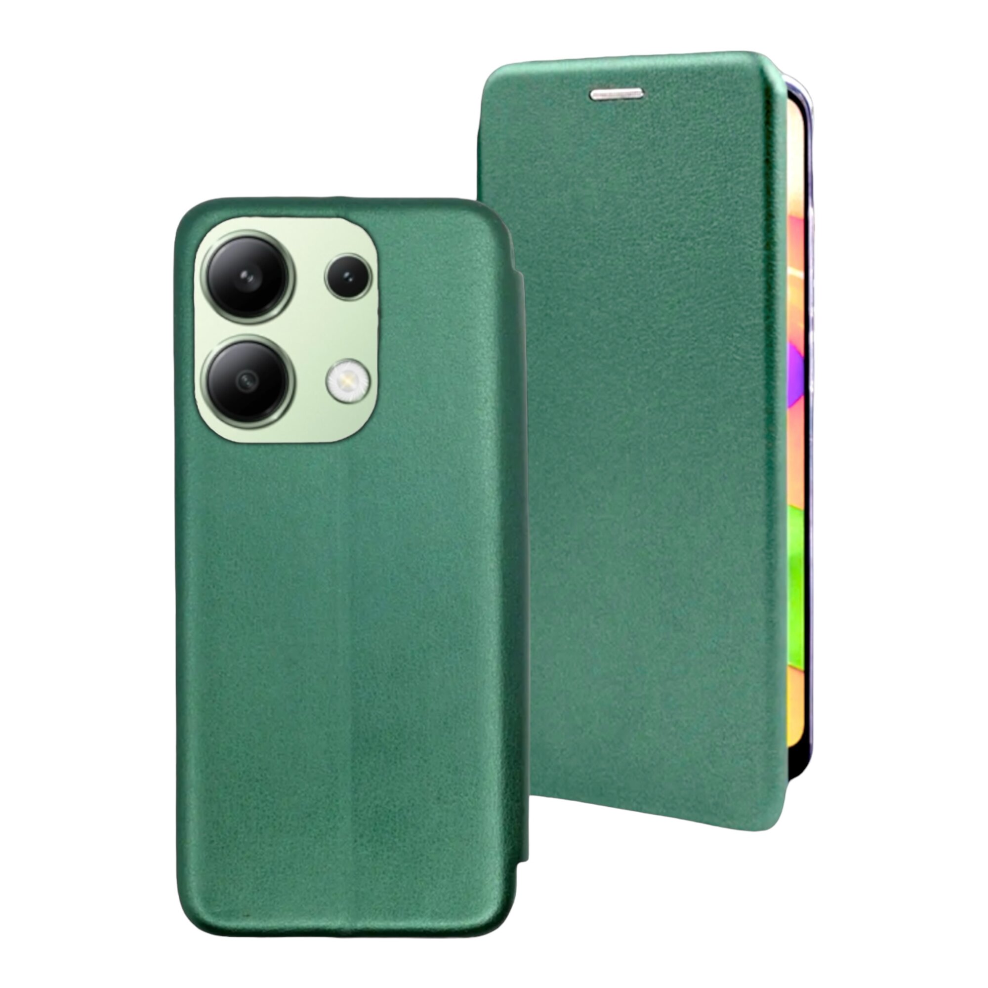 Чехол книжка для телефона Xiaomi Redmi Note 13 Pro 4G/ Poco M6 Pro (6.67"), темно-зеленый. Текстура под кожу информация: