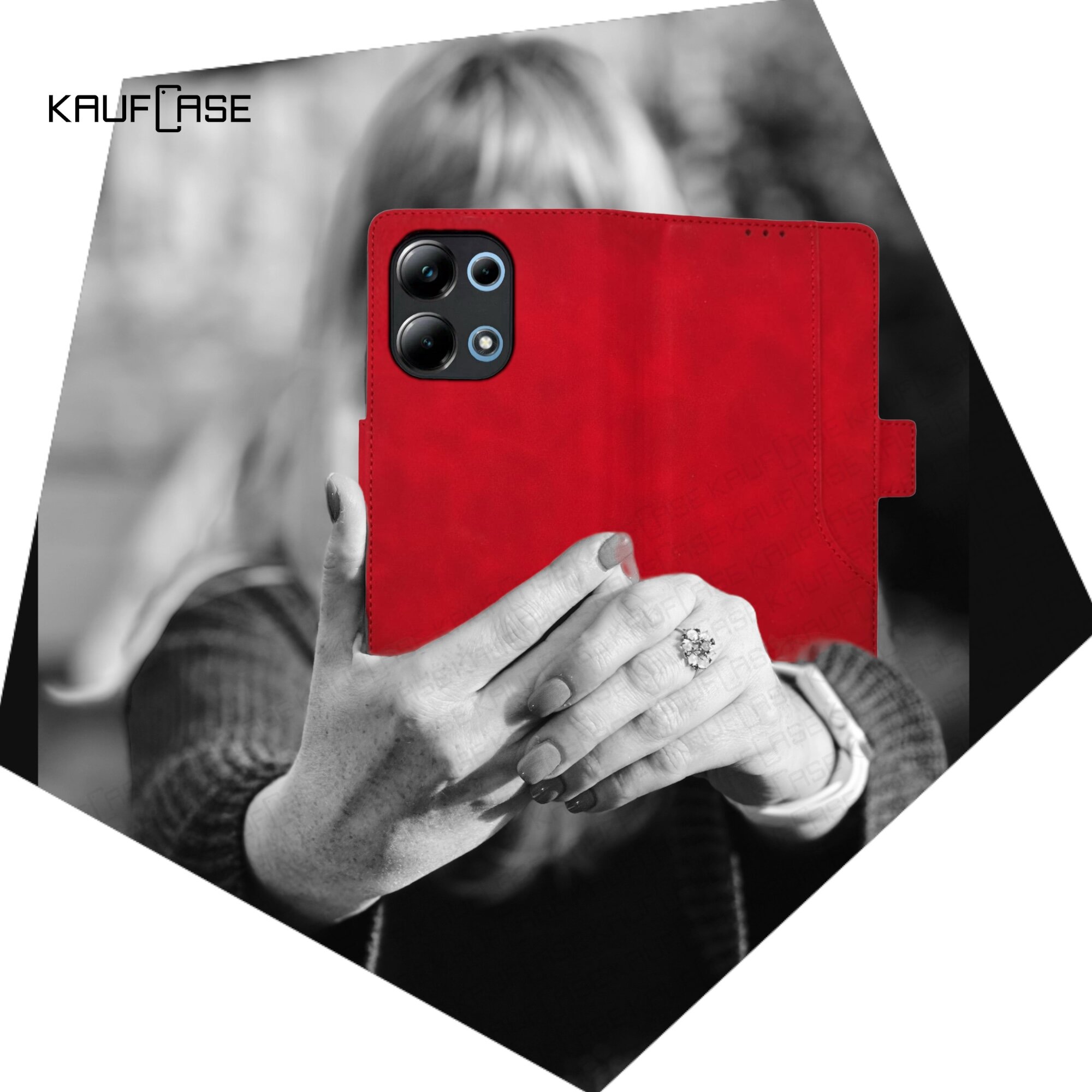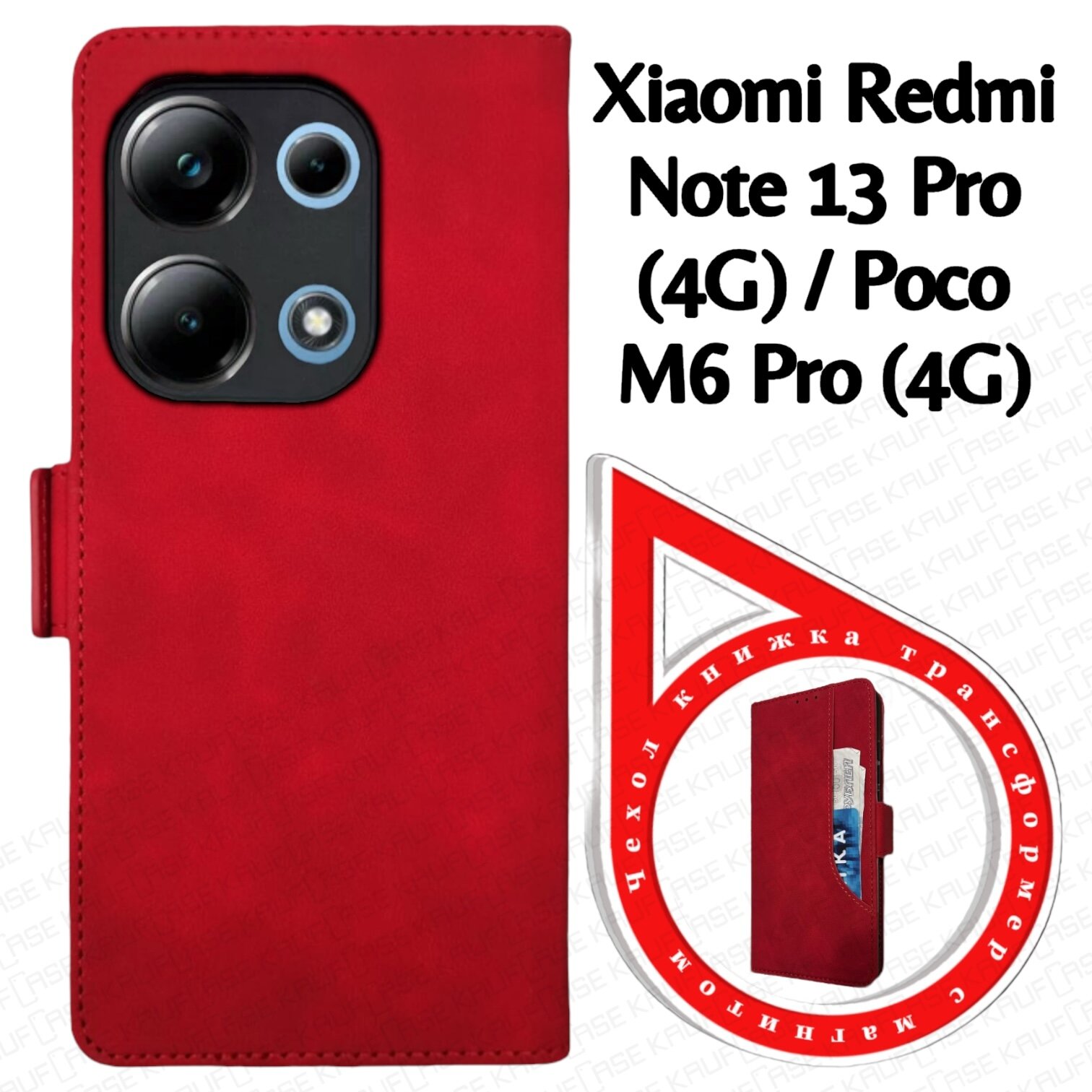 10 цен на Чехол книжка с карманом кошельком для вашего смартфона Xiaomi Redmi Note 13 Pro 4G/ Poco M6 Pro (6.67"), красный. Матовая текстура под кожу, дополнительный карман на крышке чехла, отделения для карт и купюр